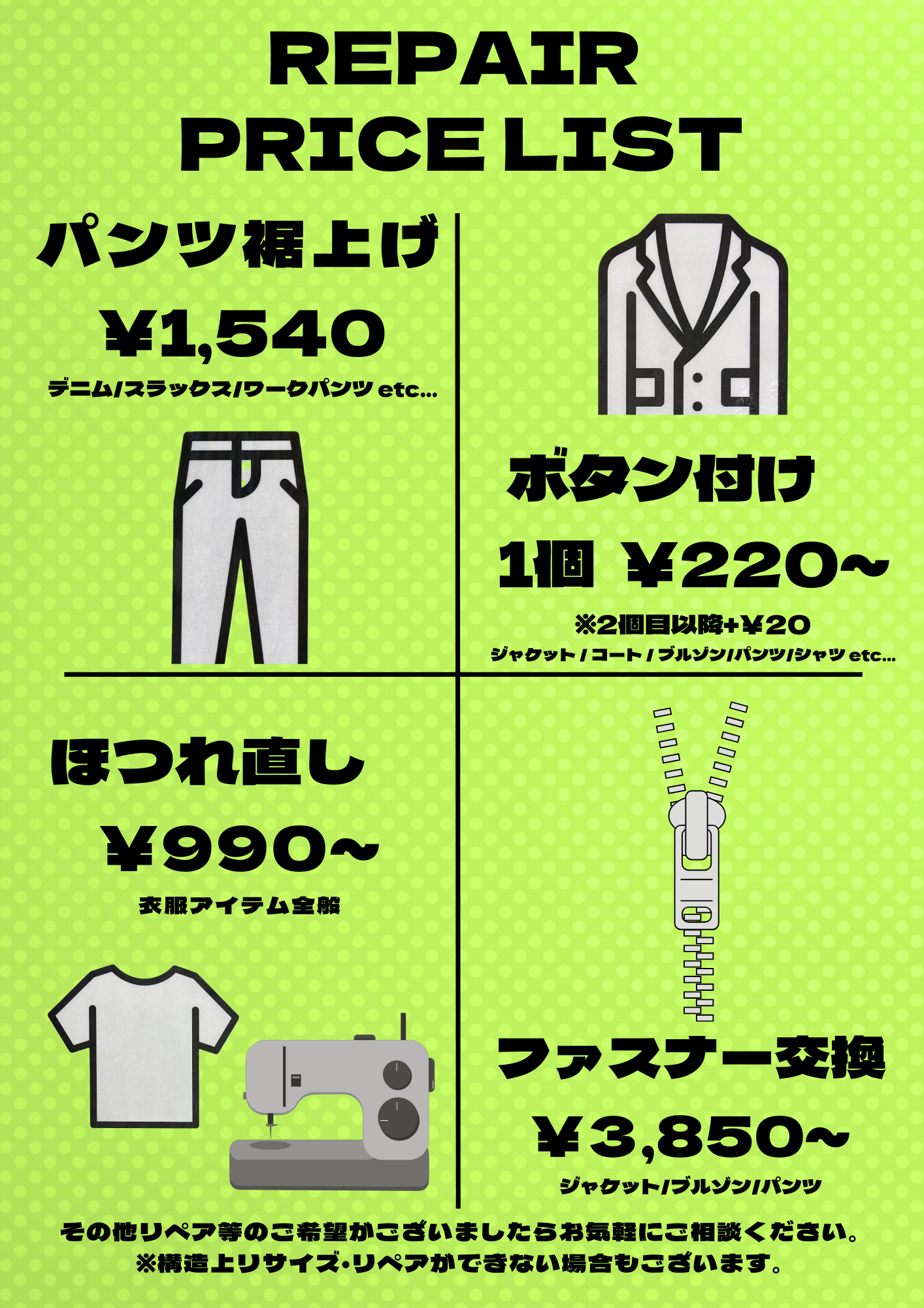 ※その他リペアのご要望もご相談いただけます。